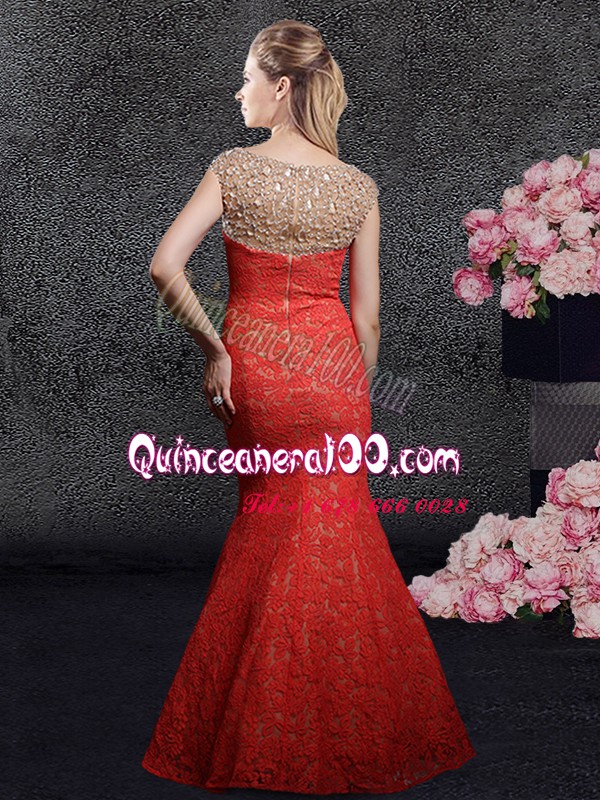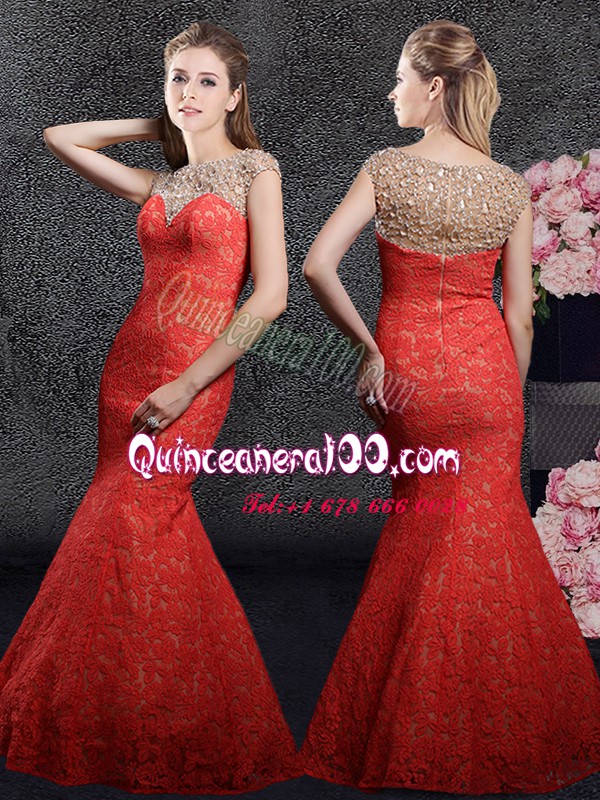 Neckline : BateauShown Color : RedSilhouette : MermaidSleeve Length : cap sleevesHemline : floor lengthBack Detail : ZipperFabric : LaceEmbellishment : Beading,LaceOccasion : Prom,Party,Military Ball,Wedding PartySeason : Spring,Summer,Fall,Winter