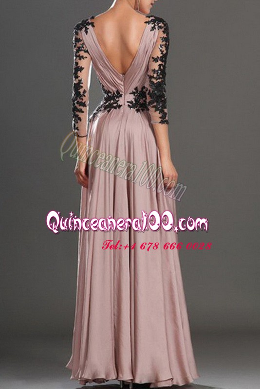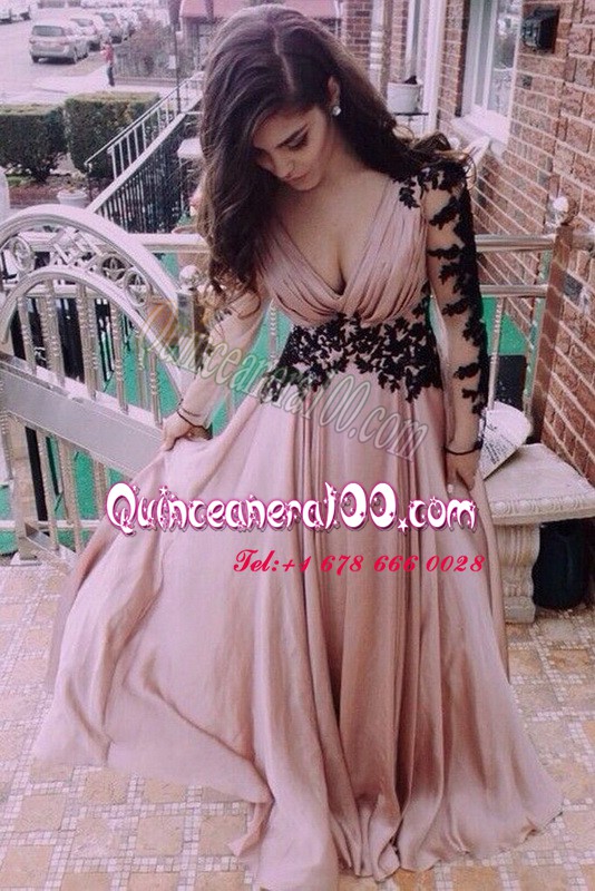 Neckline : V-neckShown Color : PinkSilhouette : Column/SheathSleeve Length : long sleevesHemline : floor lengthBack Detail : ZipperFabric : ChiffonEmbellishment : RuchingOccasion : Prom,PartySeason : Spring,Summer,Fall,Winter