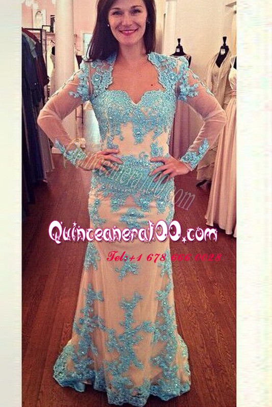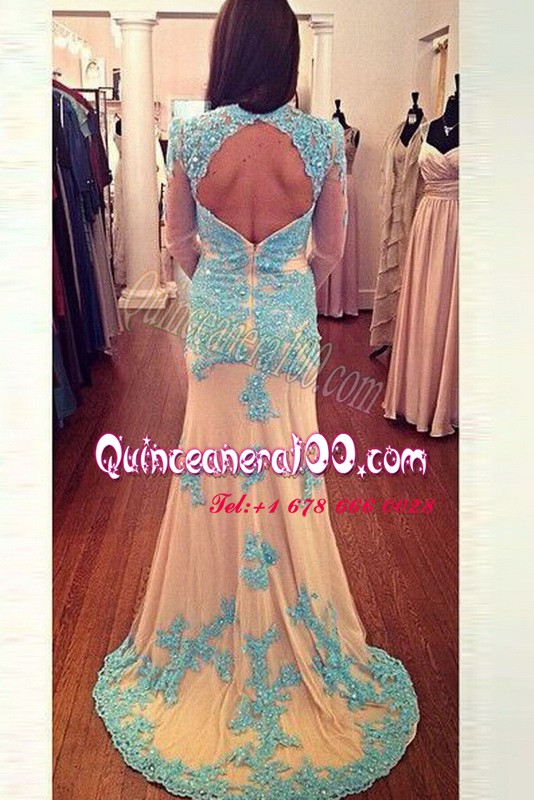 Neckline : SquareShown Color : White,BlueSilhouette : Column/SheathSleeve Length : long sleevesHemline : with trainBack Detail : ZipperFabric : ChiffonEmbellishment : BeadingOccasion : Prom,PartySeason : Spring,Fall,Winter