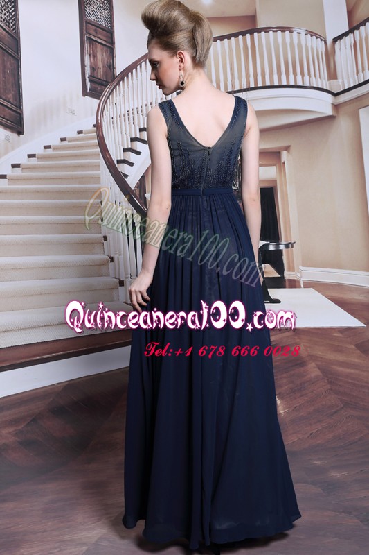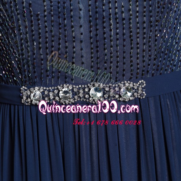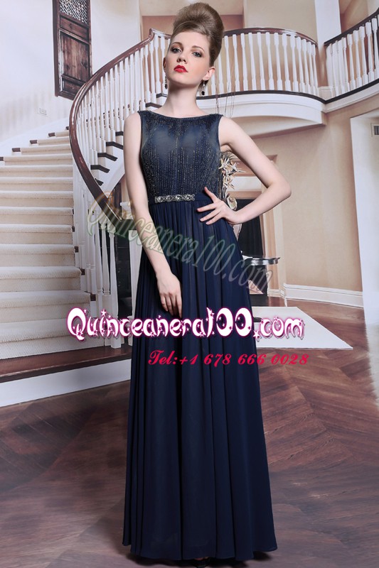 Neckline : BateauShown Color : Navy BlueSilhouette : Column/SheathSleeve Length : sleevelessHemline : floor lengthBack Detail : ZipperFabric : ChiffonEmbellishment : Beading,AppliquesOccasion : Prom,PartySeason : Spring,Summer,Fall,Winter