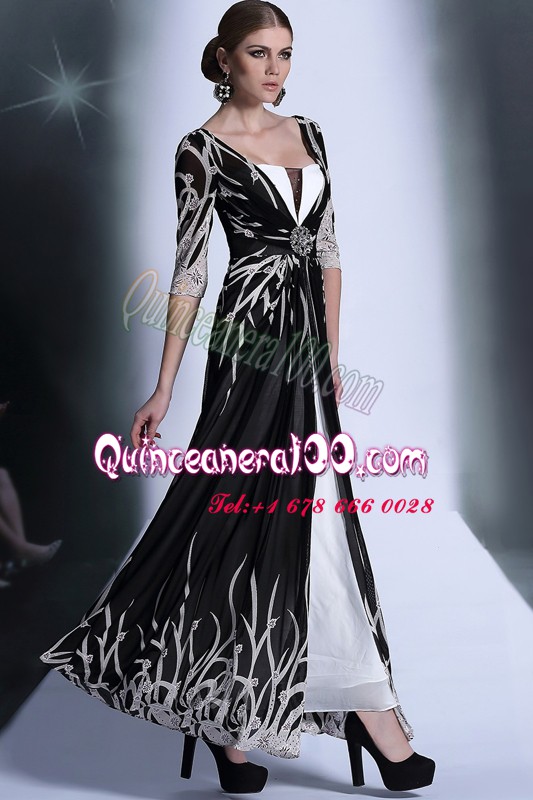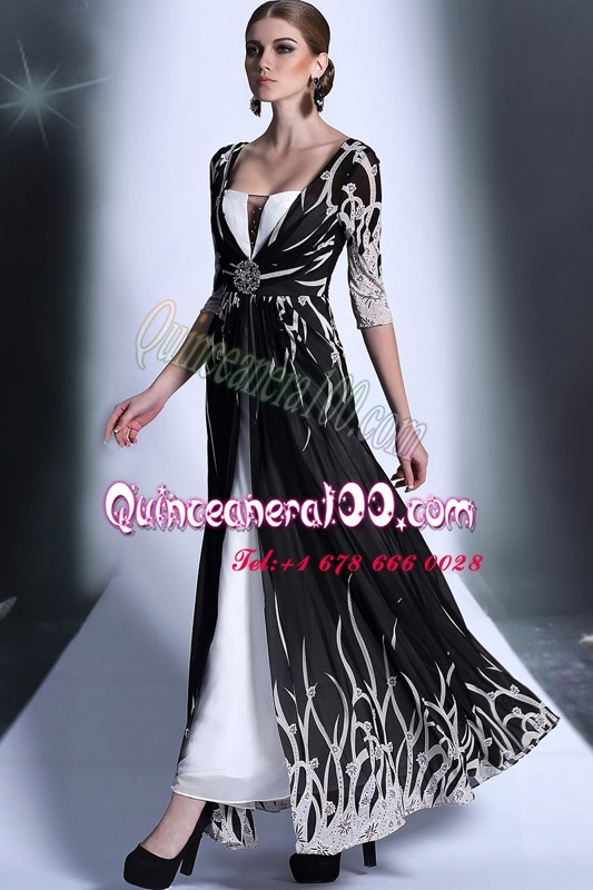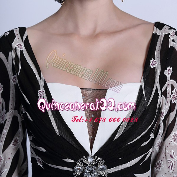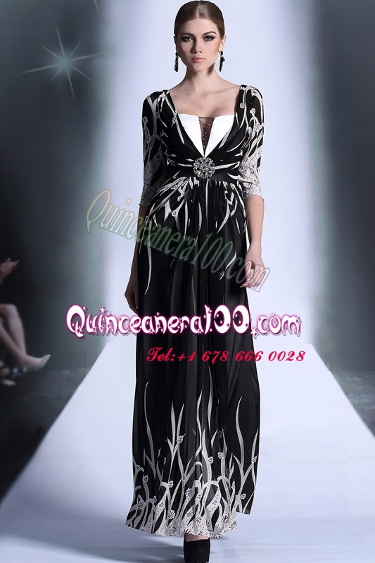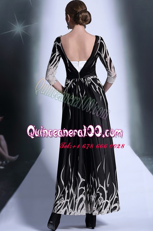 Neckline : SquareShown Color : BlackSilhouette : EmpireSleeve Length : half sleevesHemline : ankle lengthBack Detail : ZipperFabric : ChiffonEmbellishment : PatternOccasion : Prom,PartySeason : Spring,Summer,Fall,Winter