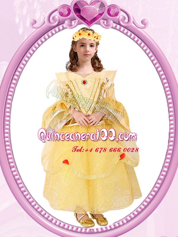 Neckline : ScoopShown Color : GoldSilhouette : A-lineSleeve Length : long sleevesHemline : ankle lengthBack Detail : ZipperFabric : SequinedEmbellishment : Beading,SequinsOccasion : Quinceanera,Wedding PartySeason : Spring,Summer,Fall,Winter