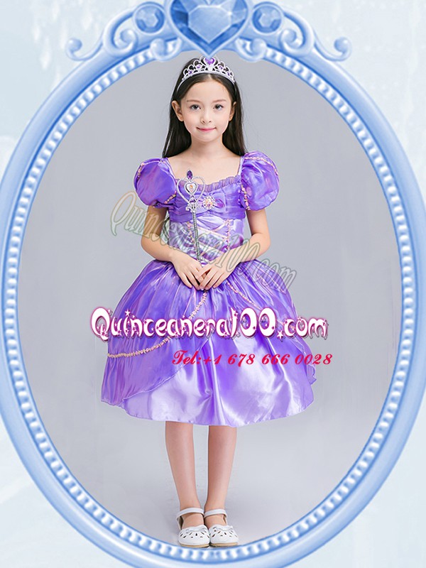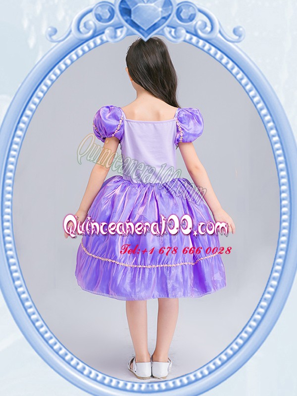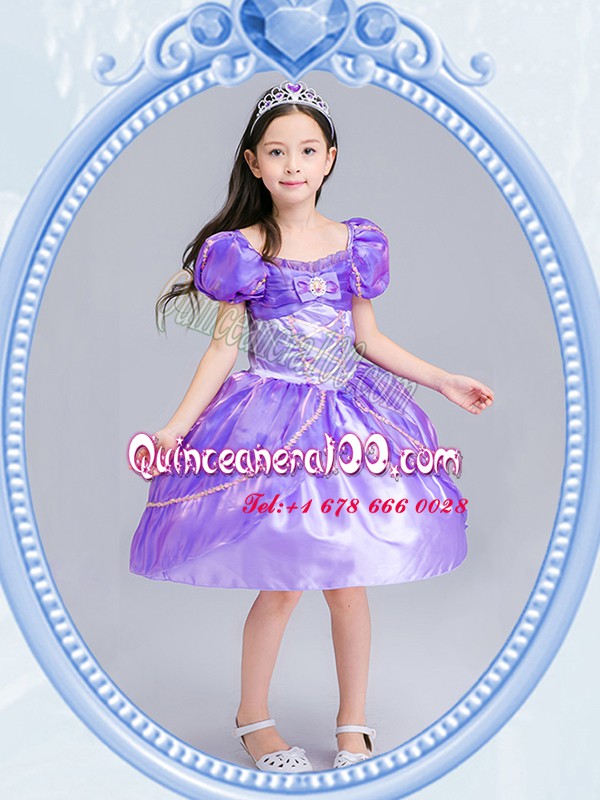 Neckline : SquareShown Color : LavenderSilhouette : Ball GownsSleeve Length : short sleevesHemline : knee lengthBack Detail : Side zipperFabric : OrganzaEmbellishment : Beading,BowknotOccasion : Party,Quinceanera,Wedding PartySeason : Spring,Summer,Fall