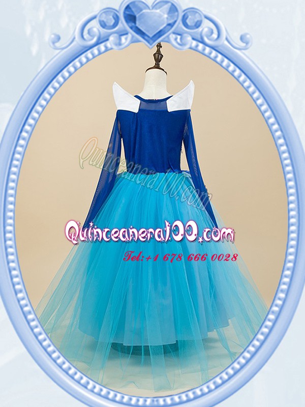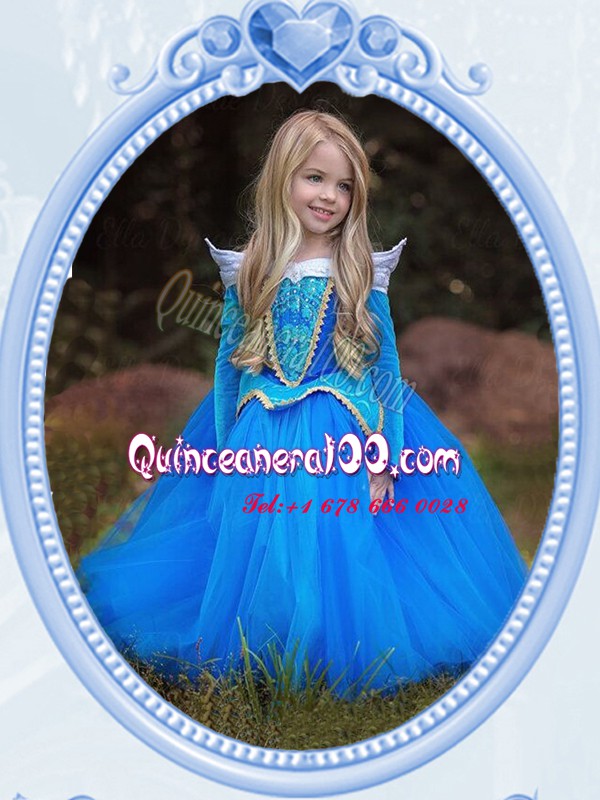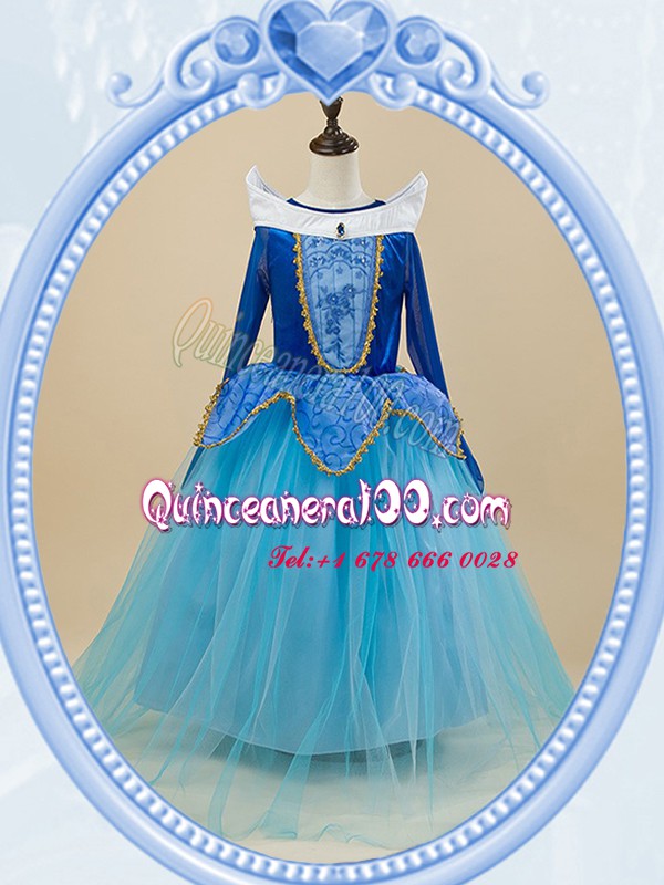 Neckline : ScoopShown Color : Baby BlueSilhouette : Ball GownsSleeve Length : long sleevesHemline : floor lengthBack Detail : Side zipperFabric : TulleEmbellishment : Beading,EmbroideryOccasion : Party,Quinceanera,Wedding PartySeason : Spring,Summer,Fall