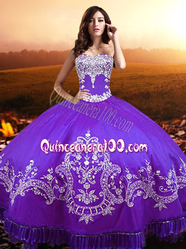 Neckline : SweetheartShown Color : PurpleSilhouette : Ball GownsSleeve Length : sleevelessHemline : floor lengthBack Detail : Lace upFabric : TaffetaEmbellishment : Beading,AppliquesOccasion : Military Ball,Sweet 16,QuinceaneraSeason : Spring,Summer,Fall,Winter