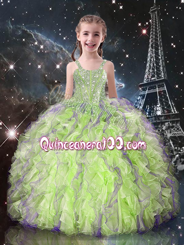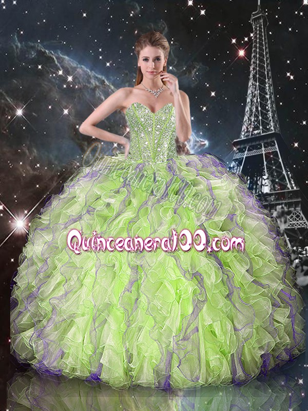 Neckline : SweetheartShown Color : Yellow GreenSilhouette : Ball GownsSleeve Length : sleevelessHemline : floor lengthBack Detail : Lace upFabric : OrganzaEmbellishment : Beading,RufflesOccasion : Military Ball,Sweet 16,QuinceaneraSeason : Spring,Summer,Fall,Winter