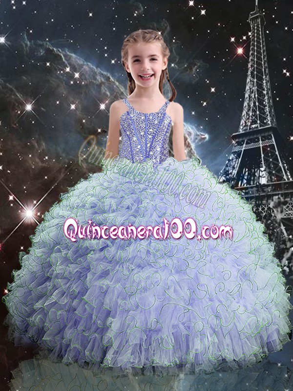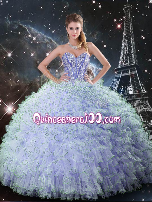 Neckline : SweetheartShown Color : LavenderSilhouette : Ball GownsSleeve Length : sleevelessHemline : floor lengthBack Detail : Lace upFabric : OrganzaEmbellishment : Beading,RufflesOccasion : Military Ball,Sweet 16,QuinceaneraSeason : Spring,Summer,Fall,Winter