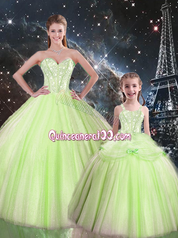 Neckline : SweetheartShown Color : Yellow GreenSilhouette : Ball GownsSleeve Length : sleevelessHemline : floor lengthBack Detail : Lace upFabric : TulleEmbellishment : BeadingOccasion : Military Ball,Sweet 16,QuinceaneraSeason : Spring,Summer,Fall,Winter