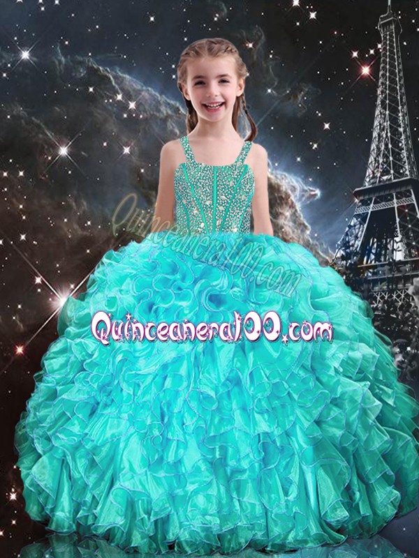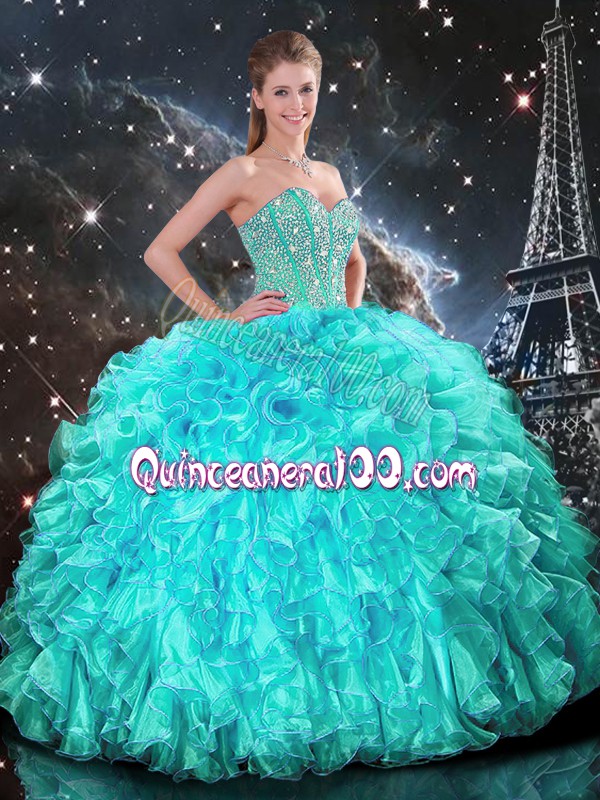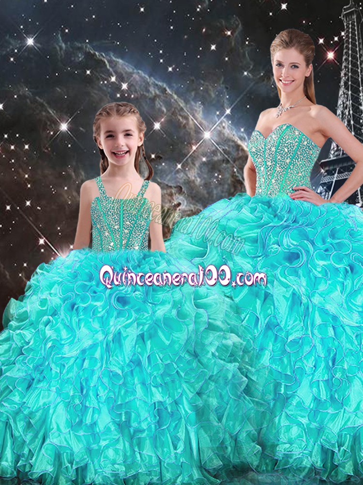 Aqua Blue Sweetheart Lace Up Beading and Ruffles Sweet 16 Dresses Sleeveless
