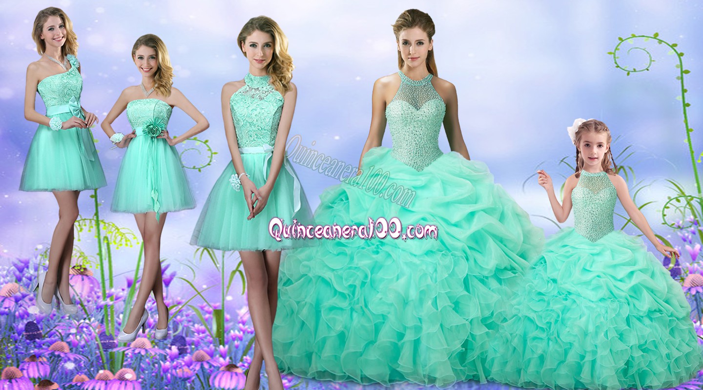Neckline : ScoopShown Color : Apple GreenSilhouette : Ball GownsSleeve Length : sleevelessHemline : floor lengthBack Detail : Lace upFabric : OrganzaEmbellishment : Beading,Ruffles,Pick UpsOccasion : Military Ball,Sweet 16,QuinceaneraSeason : Spring,Summer,Fall,Winter