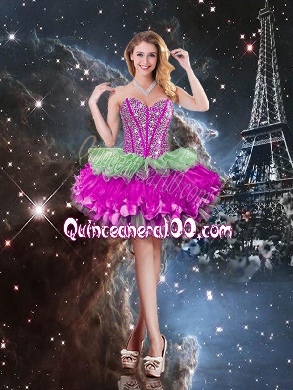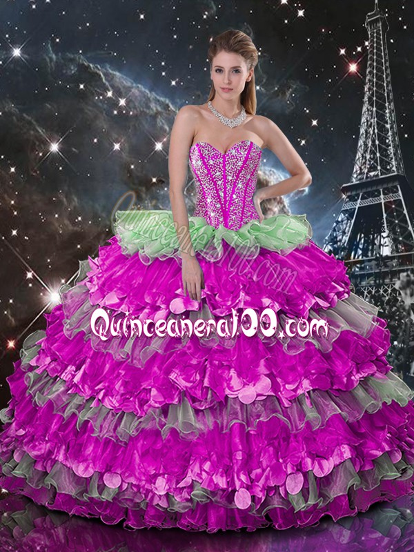 Neckline : SweetheartShown Color : Multi-colorSilhouette : Ball GownsSleeve Length : sleevelessHemline : floor lengthBack Detail : Lace upFabric : OrganzaEmbellishment : Beading,Ruffles,Ruffled LayersOccasion : Military Ball,Sweet 16Season : Spring,Summer,Fall,Winter