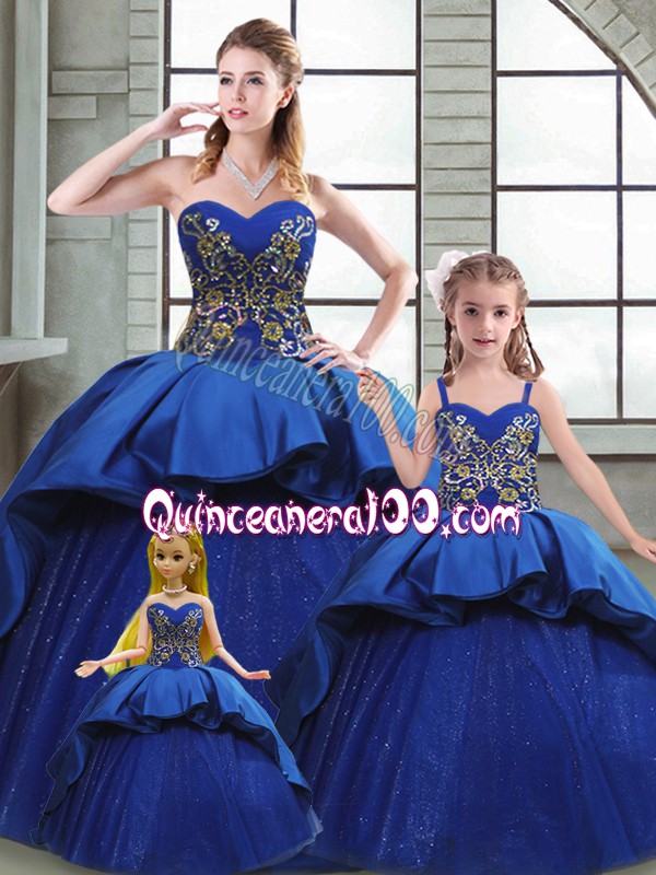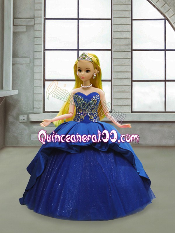 Neckline : SweetheartShown Color : BlueSilhouette : Ball GownsSleeve Length : sleevelessBack Detail : Lace upFabric : TaffetaEmbellishment : Beading,Appliques,EmbroideryOccasion : Military Ball,Sweet 16,QuinceaneraSeason : Spring,Summer,Fall,Winter