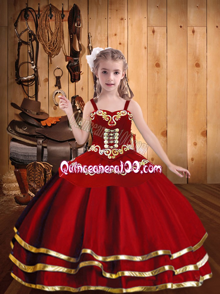 Neckline : StrapsShown Color : RedSilhouette : Ball GownsSleeve Length : sleevelessHemline : floor lengthBack Detail : Lace upFabric : OrganzaEmbellishment : Embroidery,Ruffled LayersOccasion : Sweet 16,QuinceaneraSeason : Spring,Summer,Fall,Winter