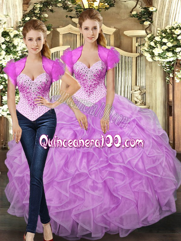 Neckline : StrapsShown Color : LilacSilhouette : Ball GownsSleeve Length : sleevelessHemline : floor lengthBack Detail : Lace upFabric : TulleEmbellishment : Beading,RufflesOccasion : Military Ball,Sweet 16,QuinceaneraSeason : Spring,Summer,Fall,Winter