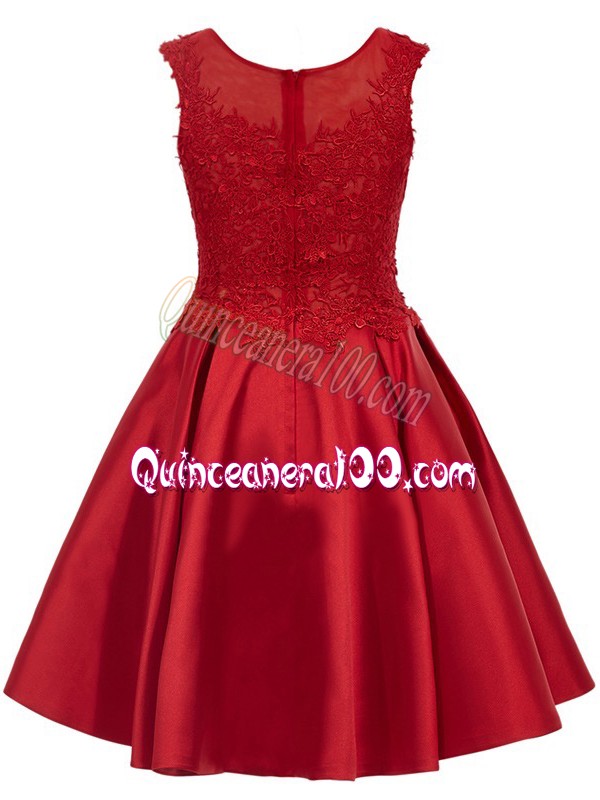 Neckline : ScoopShown Color : Wine RedSilhouette : A-lineSleeve Length : sleevelessHemline : mini lengthBack Detail : ZipperFabric : SatinEmbellishment : LaceOccasion : Prom,PartySeason : Spring,Summer,Fall
