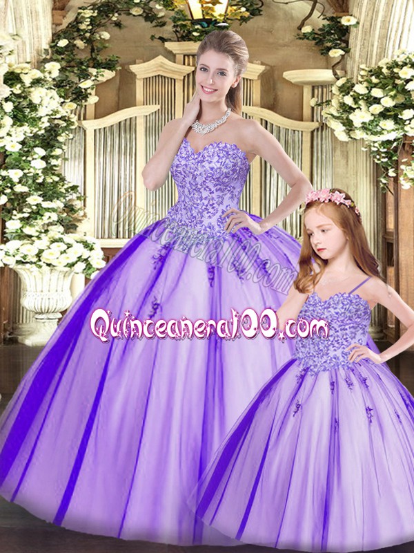 Pretty Ball Gowns Ball Gown Prom Dress Purple Sweetheart Tulle Sleeveless Floor Length Lace Up