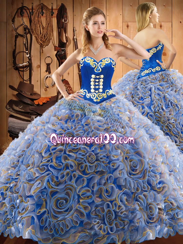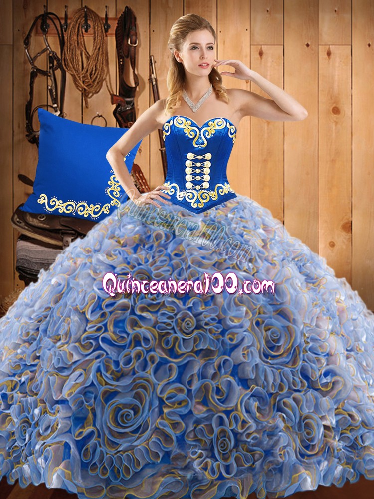 Sleeveless Sweep Train Lace Up With Train Embroidery Quinceanera Gown