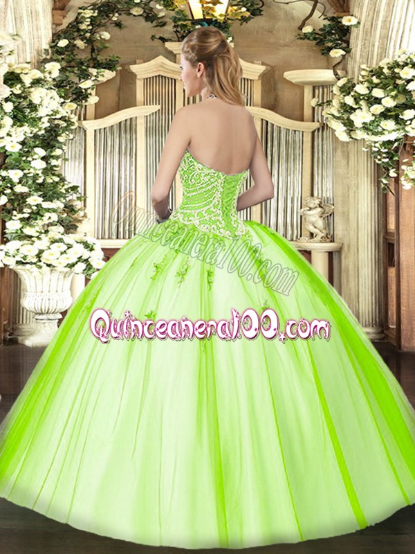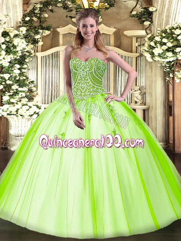 Neckline : SweetheartShown Color : Yellow GreenSilhouette : Ball GownsSleeve Length : sleevelessHemline : floor lengthBack Detail : Lace upFabric : TulleEmbellishment : BeadingOccasion : Military Ball,Sweet 16,QuinceaneraSeason : Spring,Summer,Fall,Winter