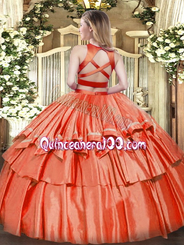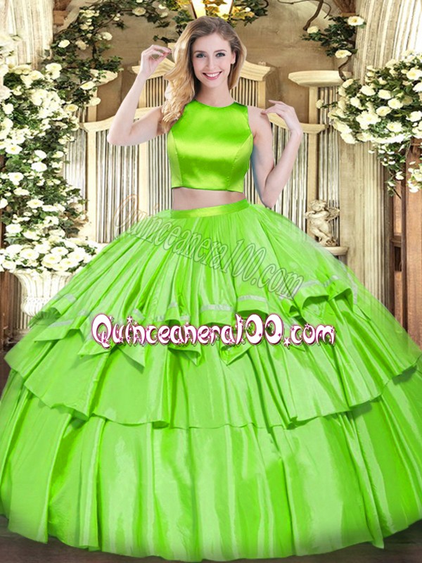 Neckline : High-neckShown Color : Spring GreenSilhouette : Two PiecesSleeve Length : sleevelessHemline : floor lengthBack Detail : Criss crossFabric : TulleEmbellishment : Ruffled LayersOccasion : Military Ball,Sweet 16,QuinceaneraSeason : Spring,Summer,Fall,Winter