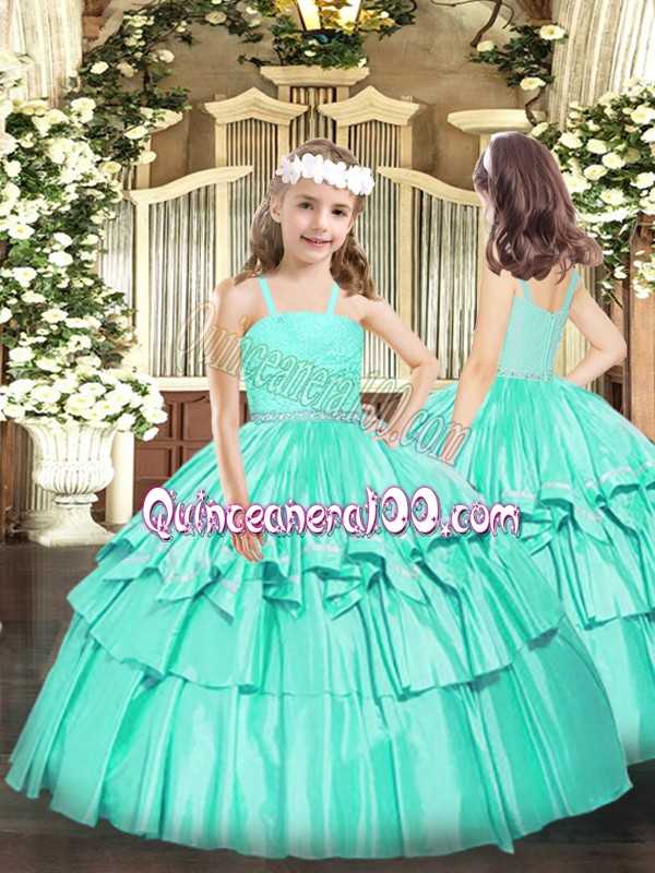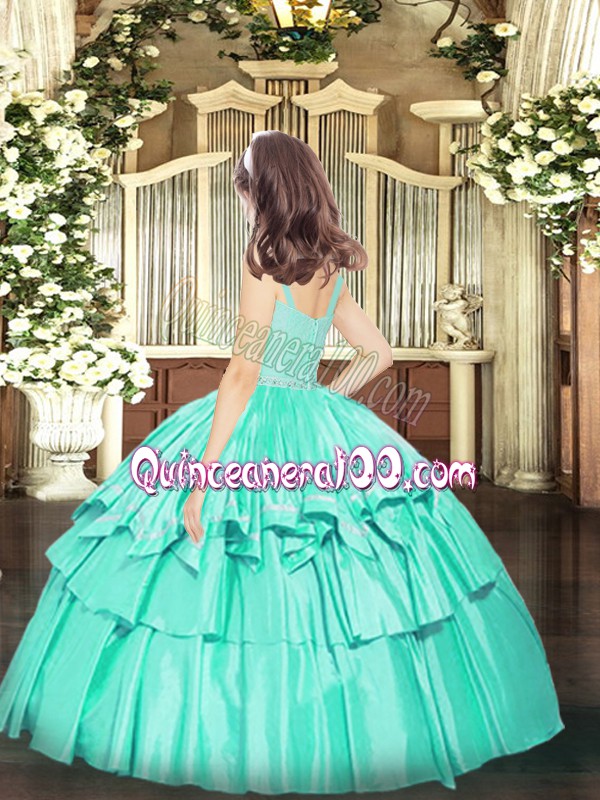 Neckline : StrapsShown Color : TurquoiseSilhouette : Ball GownsSleeve Length : sleevelessHemline : floor lengthBack Detail : ZipperFabric : OrganzaEmbellishment : Beading,LaceOccasion : Party,QuinceaneraSeason : Spring,Summer,Fall,Winter