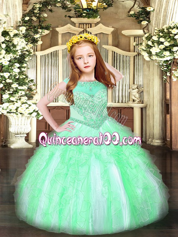 Ball Gowns Glitz Pageant Dress Apple Green Scoop Organza Sleeveless Floor Length Zipper
