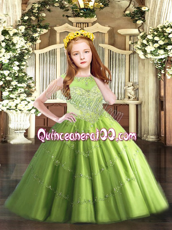 Neckline : ScoopShown Color : Spring GreenSilhouette : Ball GownsSleeve Length : sleevelessHemline : floor lengthBack Detail : ZipperFabric : TulleEmbellishment : Beading,AppliquesOccasion : Party,QuinceaneraSeason : Spring,Summer,Fall,Winter