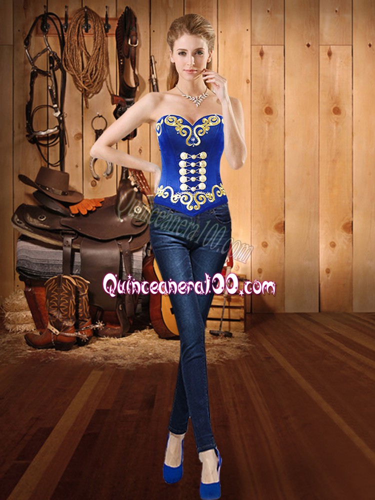 Neckline : SweetheartShown Color : BlueSilhouette : Ball GownsSleeve Length : sleevelessHemline : floor lengthBack Detail : Lace upFabric : Satin,TulleEmbellishment : EmbroideryOccasion : Military Ball,Sweet 16,QuinceaneraSeason : Spring,Summer,Fall,Winter