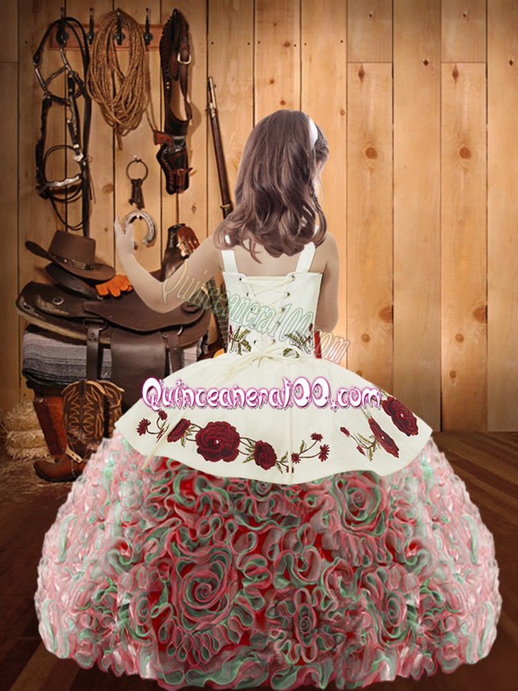 Multi-color Sleeveless Embroidery and Ruffles Floor Length Pageant Dress