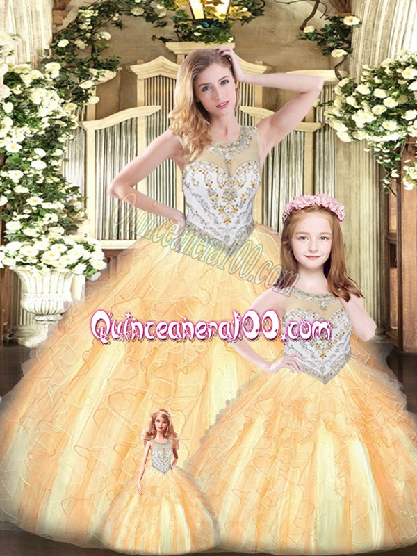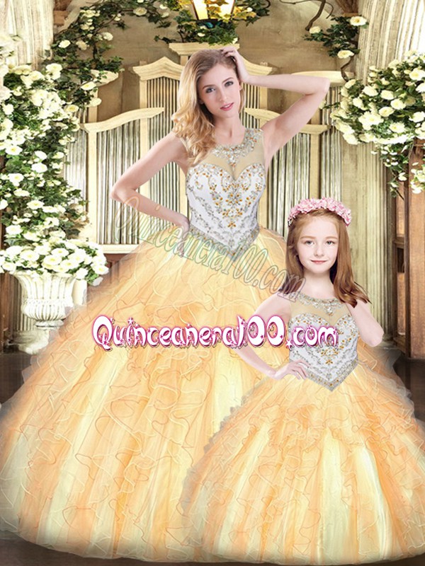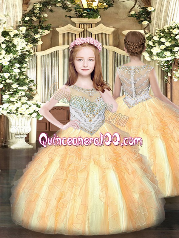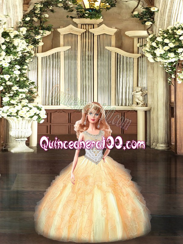 Neckline : ScoopShown Color : OrangeSilhouette : Ball GownsSleeve Length : sleevelessHemline : floor lengthBack Detail : Lace upFabric : TulleEmbellishment : Beading,RufflesOccasion : Military Ball,Sweet 16,QuinceaneraSeason : Spring,Summer,Fall,Winter