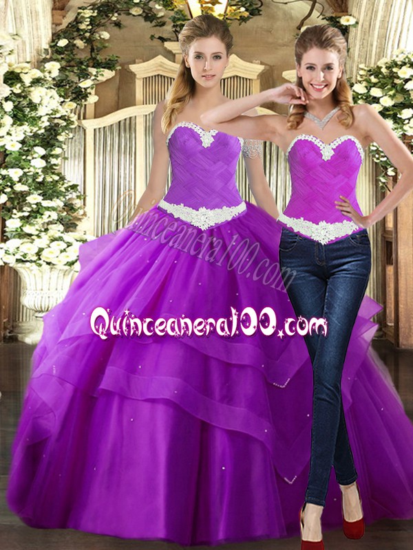 Neckline : SweetheartShown Color : PurpleSilhouette : Ball GownsSleeve Length : sleevelessHemline : floor lengthBack Detail : Lace upFabric : TulleEmbellishment : Beading,RuchingOccasion : Military Ball,Sweet 16,QuinceaneraSeason : Spring,Summer,Fall,Winter