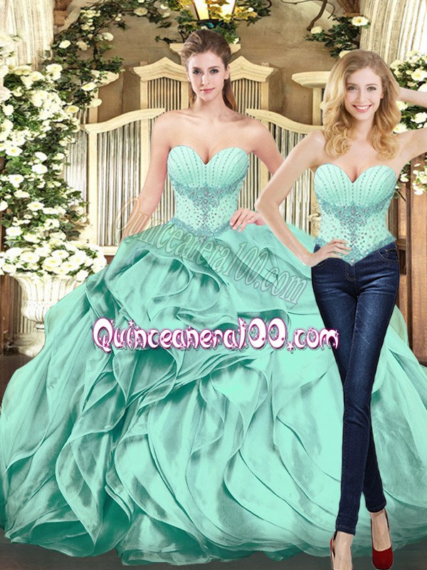 Fashionable Apple Green Organza Lace Up Quinceanera Dress Sleeveless Floor Length Beading and Ruffles
