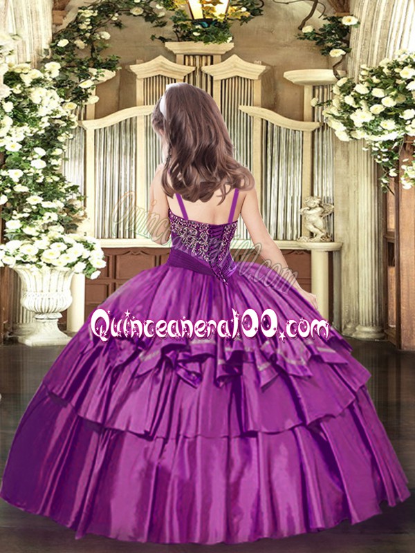 Neckline : StrapsShown Color : LilacSilhouette : Ball GownsSleeve Length : sleevelessHemline : floor lengthBack Detail : Lace upFabric : OrganzaEmbellishment : Beading,Ruffled LayersOccasion : Party,QuinceaneraSeason : Spring,Summer,Fall,Winter