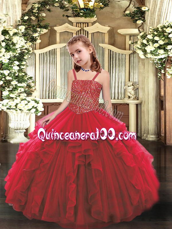 Neckline : StrapsShown Color : RedSilhouette : Ball GownsSleeve Length : sleevelessHemline : floor lengthBack Detail : Lace upFabric : OrganzaEmbellishment : Beading,RufflesOccasion : Party,Sweet 16,Quinceanera,Wedding PartySeason : Spring,Summer,Fall,Winter