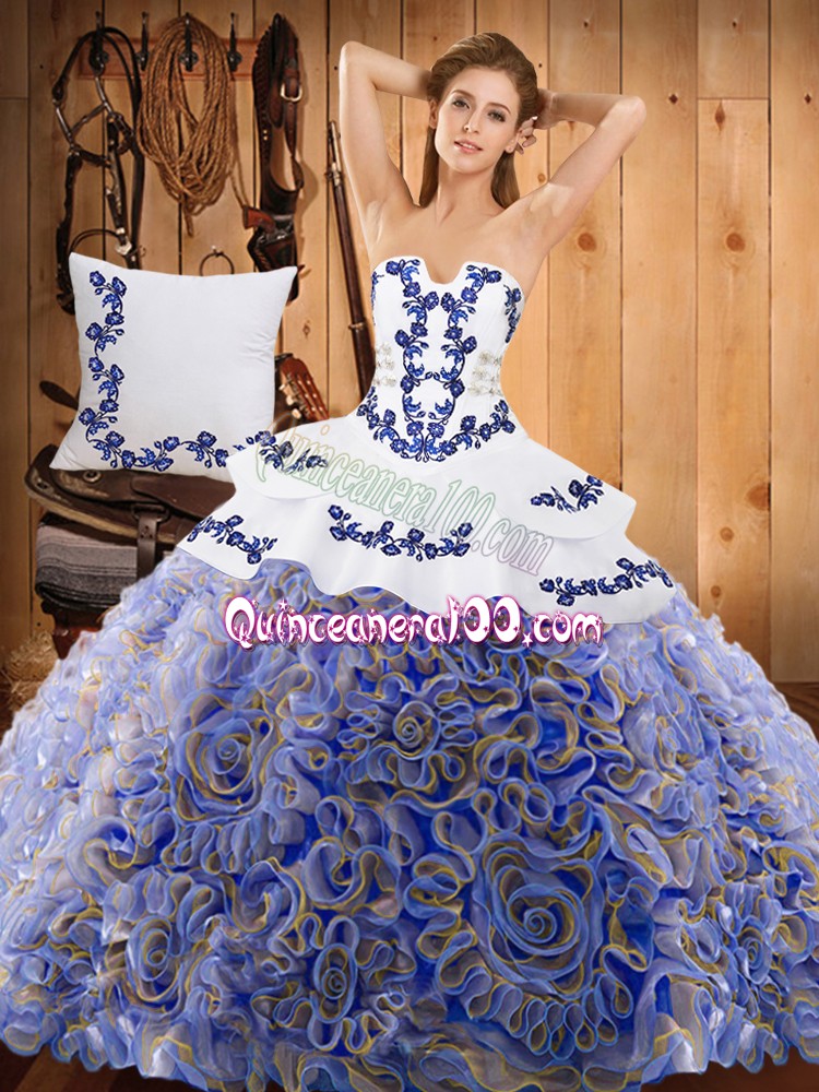 Neckline : StraplessShown Color : Multi-colorSilhouette : Ball GownsSleeve Length : sleevelessHemline : with trainBack Detail : Lace upFabric : Satin,Fabric With Rolling FlowersEmbellishment : EmbroideryOccasion : Military Ball,Sweet 16,QuinceaneraSeason : Spring,Summer,Fall,Winter