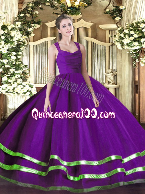 Neckline : StrapsShown Color : PurpleSilhouette : Ball GownsSleeve Length : sleevelessHemline : floor lengthBack Detail : ZipperFabric : OrganzaEmbellishment : Ruffled Layers,RuchingOccasion : Military Ball,Sweet 16,QuinceaneraSeason : Spring,Summer,Fall,Winter