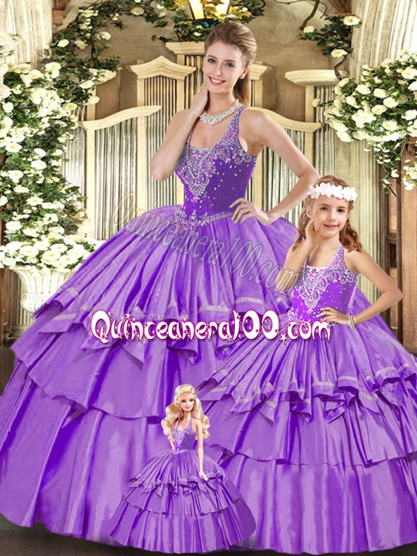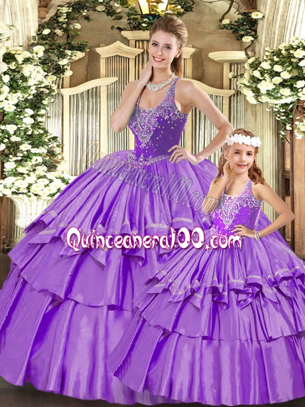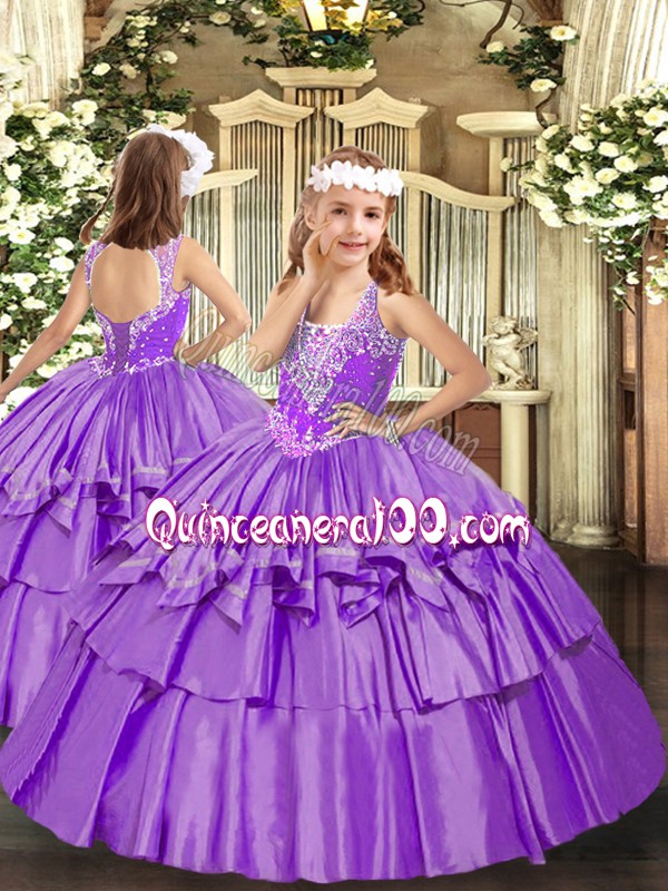 Neckline : StrapsShown Color : LilacSilhouette : Ball GownsSleeve Length : sleevelessHemline : floor lengthBack Detail : Lace upFabric : OrganzaEmbellishment : Beading,Ruffled LayersOccasion : Military Ball,Sweet 16,QuinceaneraSeason : Spring,Summer,Fall,Winter