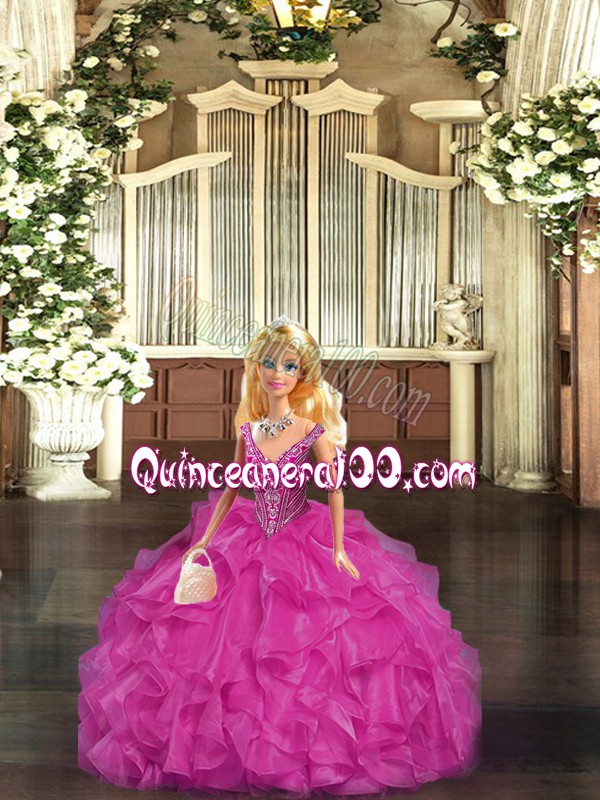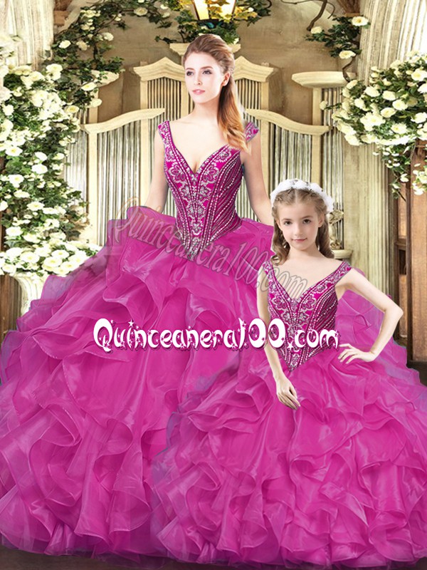 Neckline : StrapsShown Color : FuchsiaSilhouette : Ball GownsSleeve Length : sleevelessHemline : floor lengthBack Detail : Lace upFabric : TulleEmbellishment : Beading,RufflesOccasion : Military Ball,Sweet 16,QuinceaneraSeason : Spring,Summer,Fall,Winter