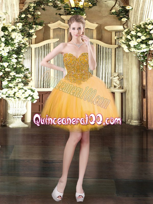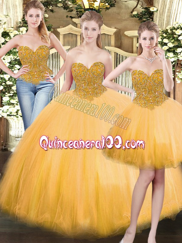 Neckline : SweetheartShown Color : GoldSilhouette : Ball GownsSleeve Length : sleevelessHemline : floor lengthBack Detail : Lace upFabric : TulleEmbellishment : BeadingOccasion : Military Ball,Sweet 16,QuinceaneraSeason : Spring,Summer,Fall,Winter