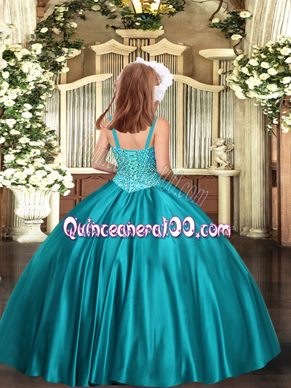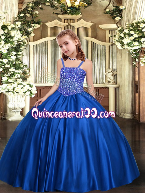 Neckline : StrapsShown Color : Royal BlueSilhouette : Ball GownsSleeve Length : sleevelessHemline : floor lengthBack Detail : Lace upFabric : SatinEmbellishment : BeadingOccasion : Party,Sweet 16,Quinceanera,Wedding PartySeason : Spring,Summer,Fall,Winter