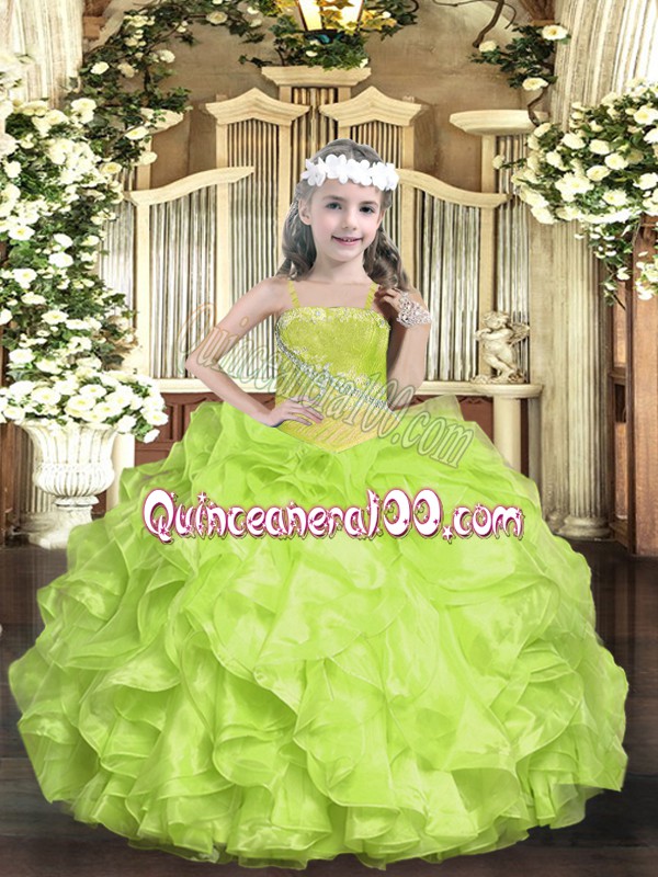 Neckline : StrapsShown Color : Yellow GreenSilhouette : Ball GownsSleeve Length : sleevelessHemline : floor lengthBack Detail : Lace upFabric : OrganzaEmbellishment : BeadingOccasion : Party,Sweet 16,Quinceanera,Wedding PartySeason : Spring,Summer,Fall,Winter