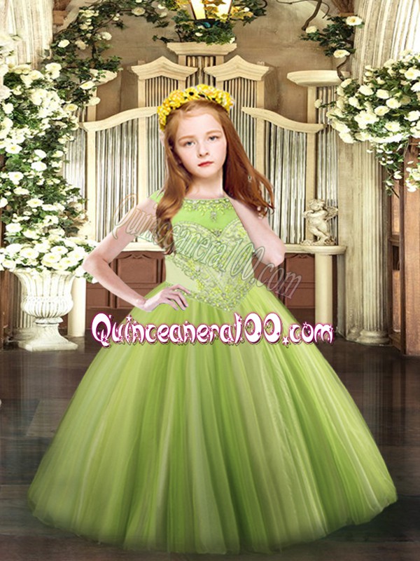 Neckline : ScoopShown Color : Yellow GreenSilhouette : Ball GownsSleeve Length : sleevelessHemline : floor lengthBack Detail : ZipperFabric : TulleEmbellishment : BeadingOccasion : Party,QuinceaneraSeason : Spring,Summer,Fall,Winter
