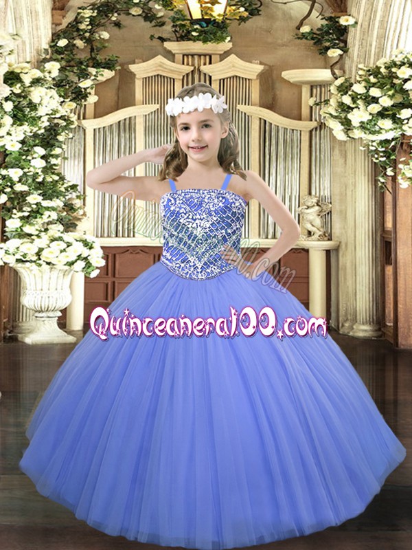 Neckline : StrapsShown Color : BlueSilhouette : Ball GownsSleeve Length : sleevelessHemline : floor lengthBack Detail : Lace upFabric : TulleEmbellishment : BeadingOccasion : Party,QuinceaneraSeason : Spring,Summer,Fall,Winter