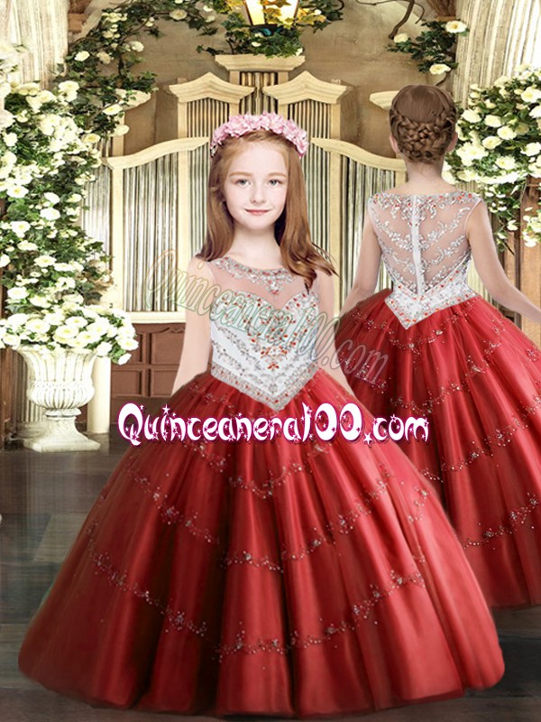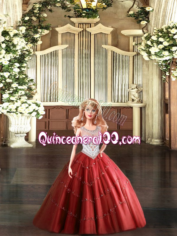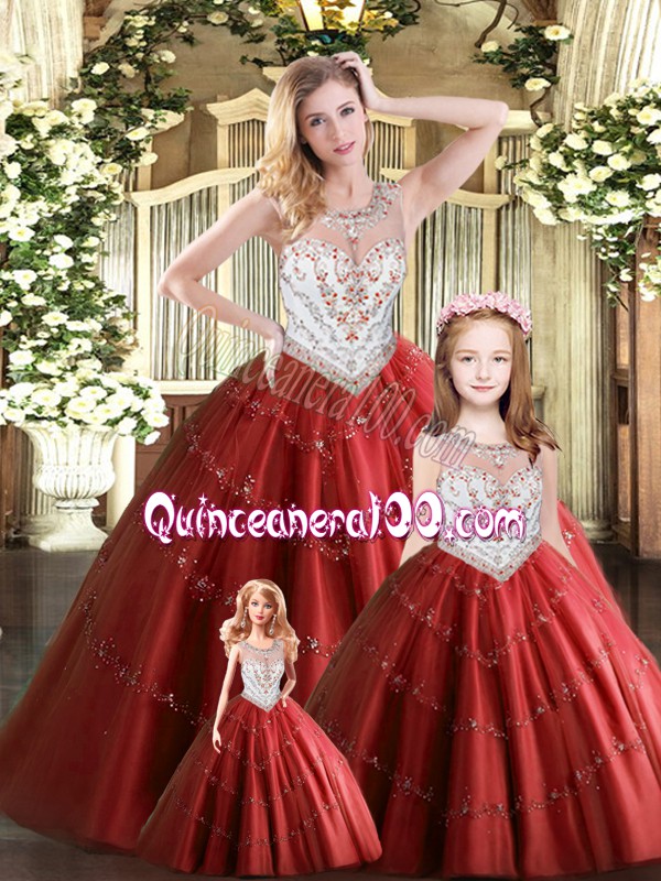 Neckline : ScoopShown Color : Wine RedSilhouette : Ball GownsSleeve Length : sleevelessHemline : floor lengthBack Detail : Lace upFabric : TulleEmbellishment : BeadingOccasion : Military Ball,Sweet 16,QuinceaneraSeason : Spring,Summer,Fall,Winter