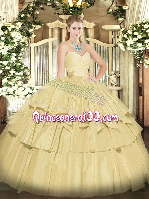 Neckline : SweetheartShown Color : YellowSilhouette : Ball GownsSleeve Length : sleevelessHemline : floor lengthBack Detail : Lace upFabric : TaffetaEmbellishment : Beading,Ruffled LayersOccasion : Military Ball,Sweet 16,QuinceaneraSeason : Spring,Summer,Fall,Winter