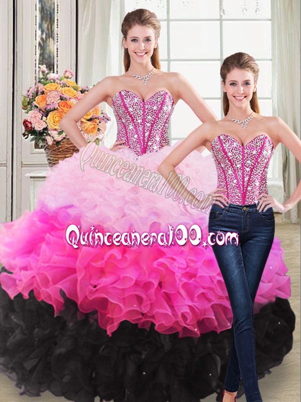 Neckline : SweetheartShown Color : Multi-colorSilhouette : Ball GownsSleeve Length : sleevelessHemline : floor lengthBack Detail : Lace upFabric : OrganzaEmbellishment : Beading,RufflesOccasion : Sweet 16,QuinceaneraSeason : Spring,Summer,Fall,Winter