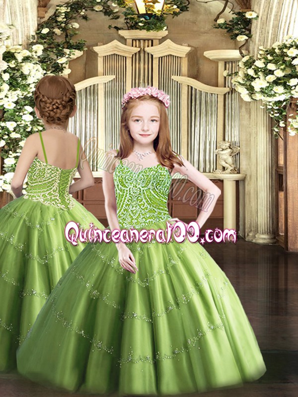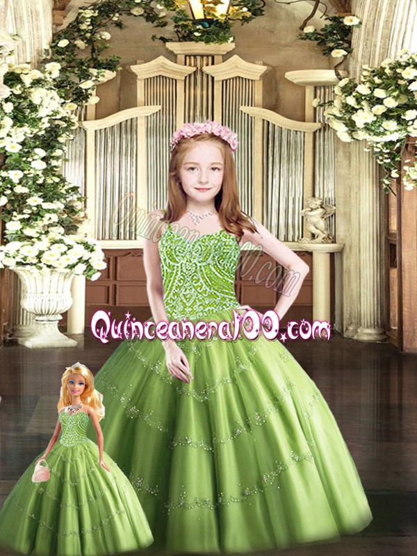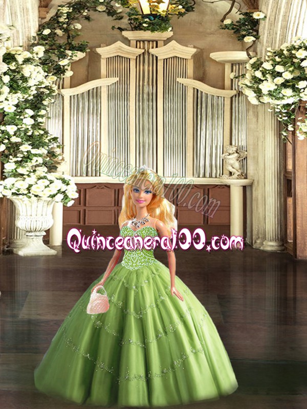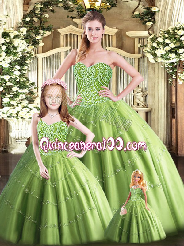 Neckline : SweetheartShown Color : Olive GreenSilhouette : Ball GownsSleeve Length : sleevelessHemline : floor lengthBack Detail : Lace upFabric : TulleEmbellishment : BeadingOccasion : Military Ball,Sweet 16,QuinceaneraSeason : Spring,Summer,Fall,Winter