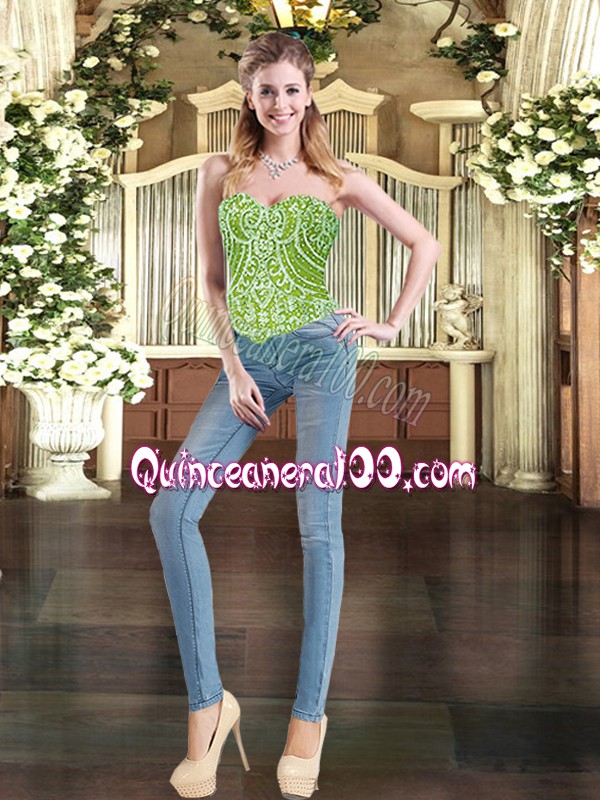 Neckline : Sweetheart Shown Color : Spring Green Silhouette : Two Pieces Sleeve Length : sleeveless Hemline : floor length Back Detail : Lace up Fabric : Organza Embellishment : Beading,Ruffles Occasion : Military Ball,Sweet 16,Quinceanera Season : Spring,Summer,Winter