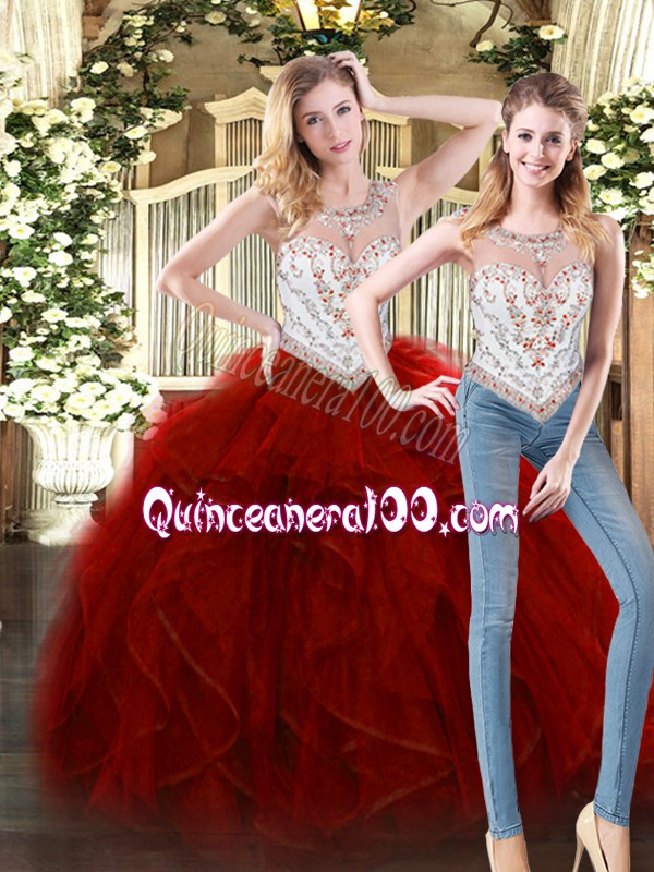 Neckline : ScoopShown Color : Wine RedSilhouette : Ball GownsSleeve Length : sleevelessHemline : floor lengthBack Detail : ZipperFabric : TulleEmbellishment : Beading,RufflesOccasion : Military Ball,Sweet 16,QuinceaneraSeason : Spring,Summer,Fall,Winter