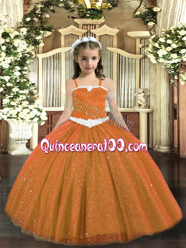 Neckline : StrapsShown Color : Rust RedSilhouette : Ball GownsSleeve Length : sleevelessHemline : floor lengthBack Detail : Lace upFabric : TulleEmbellishment : AppliquesOccasion : Party,QuinceaneraSeason : Spring,Summer,Fall,Winter