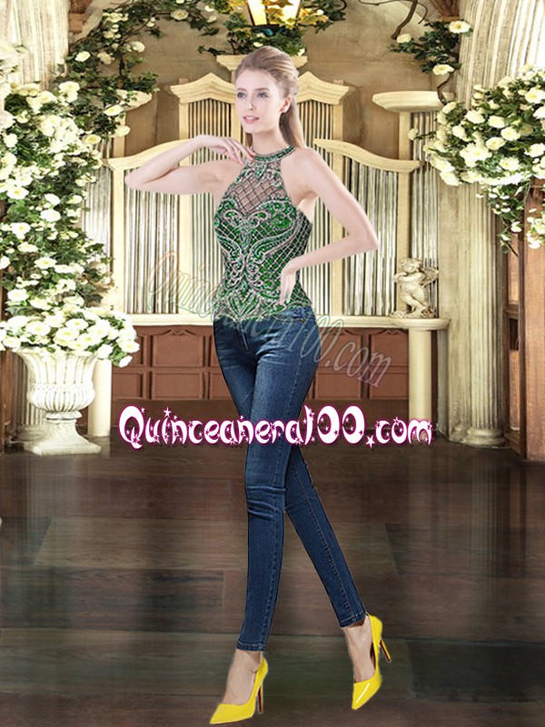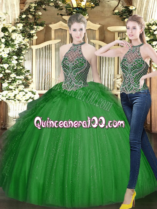 Neckline : High-neckShown Color : Dark GreenSilhouette : Ball GownsSleeve Length : sleevelessHemline : floor lengthBack Detail : Lace upFabric : TulleEmbellishment : Beading,RufflesOccasion : Military Ball,Sweet 16,QuinceaneraSeason : Spring,Summer,Fall,Winter